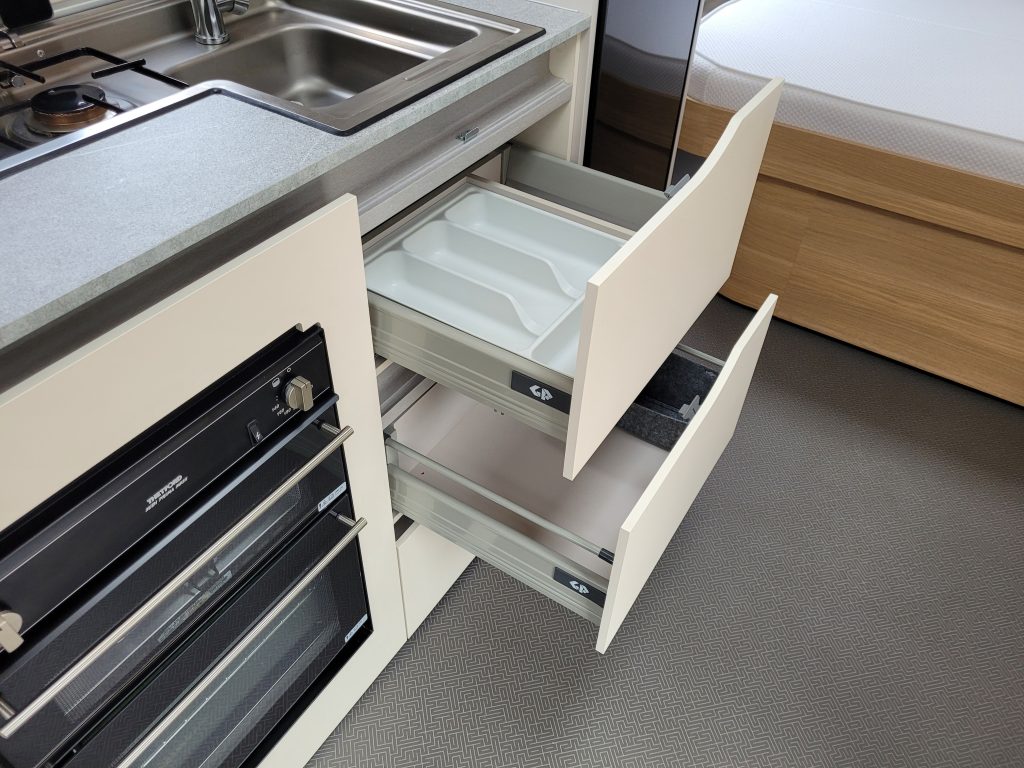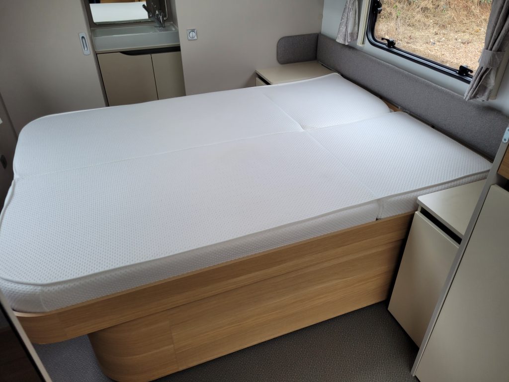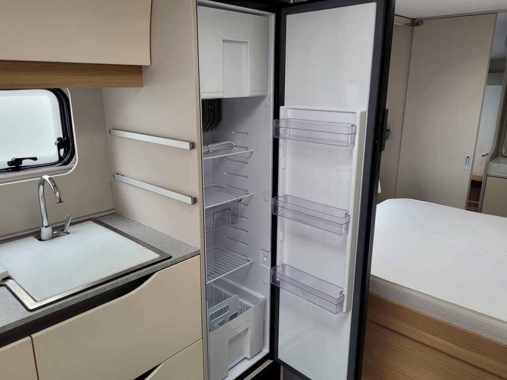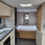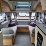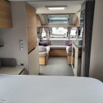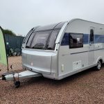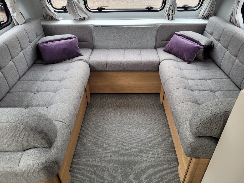 Very spacious, eight-foot wide, single axle four berth caravan with a luxurious finish throughout. Featuring a roomy U-shaped seating area at the front converting to a double bed, large transverse fixed island bed with adjustable bed heads, centre kitchen area with tall fridge freezer and integrated microwave, whilst the end bathroom has a cassette toilet, separate shower cubicle and vanity hand basin unit. This caravan further benefits from a motor mover already fitted for ease of manoeuvring and Alde wet central heating system to keep you comfortable all year round.