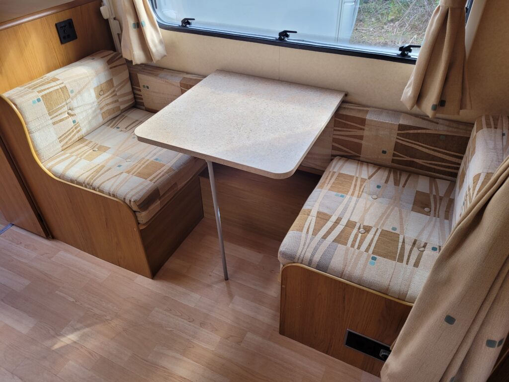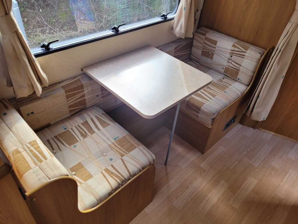 Bench seating at the front converting to a large double bed