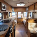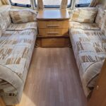 Spacious, single axle, four berth caravan with a great family layout. Featuring bench seating at the front converting to a large double bed, side dinette seating converting to bunk beds, centre kitchen with full cooker, fridge and microwave, whilst the end bathroom has a large walk-in separate shower cubicle. Further benefits from a motor mover already fitted for ease of manoeuvring and AL-KO ATC automatic trailer control for added safety whilst towing.