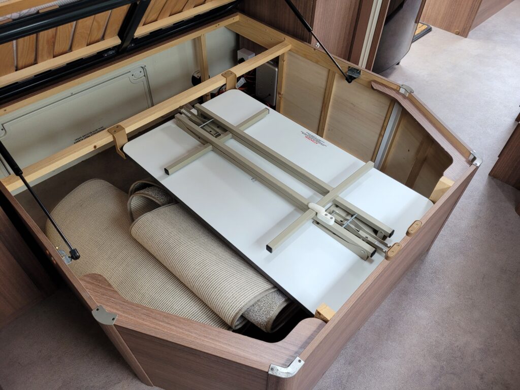 Bench seating area at the front converting to large double bed