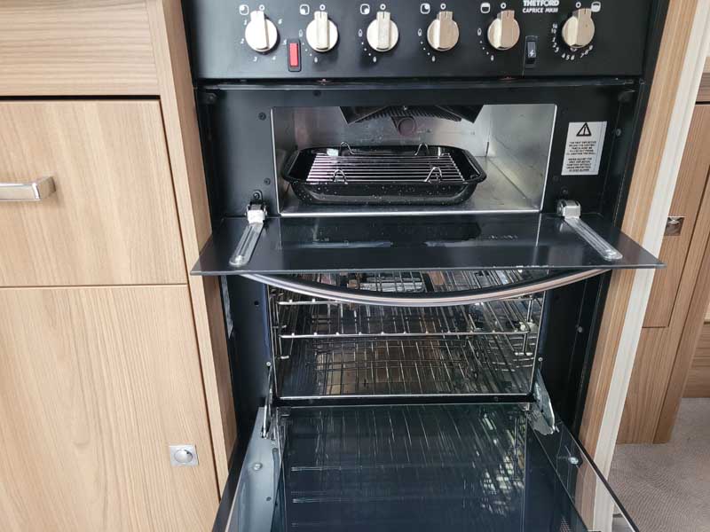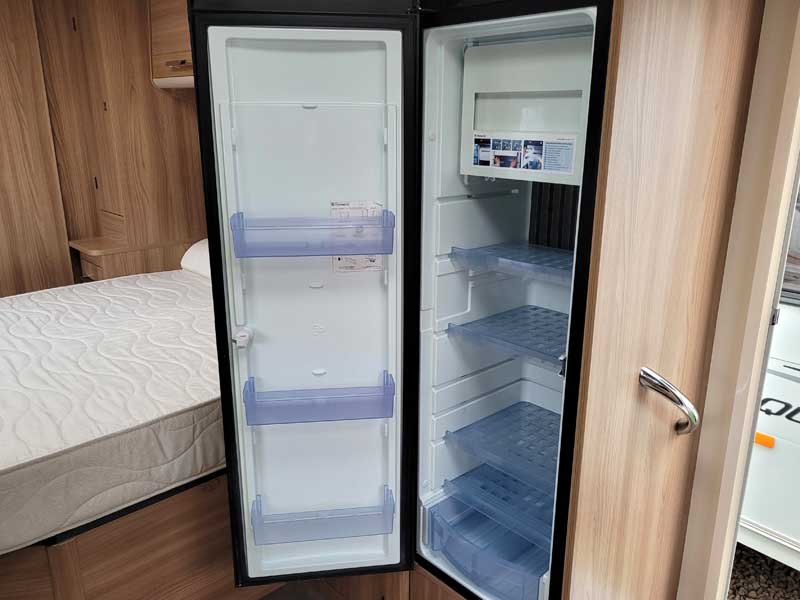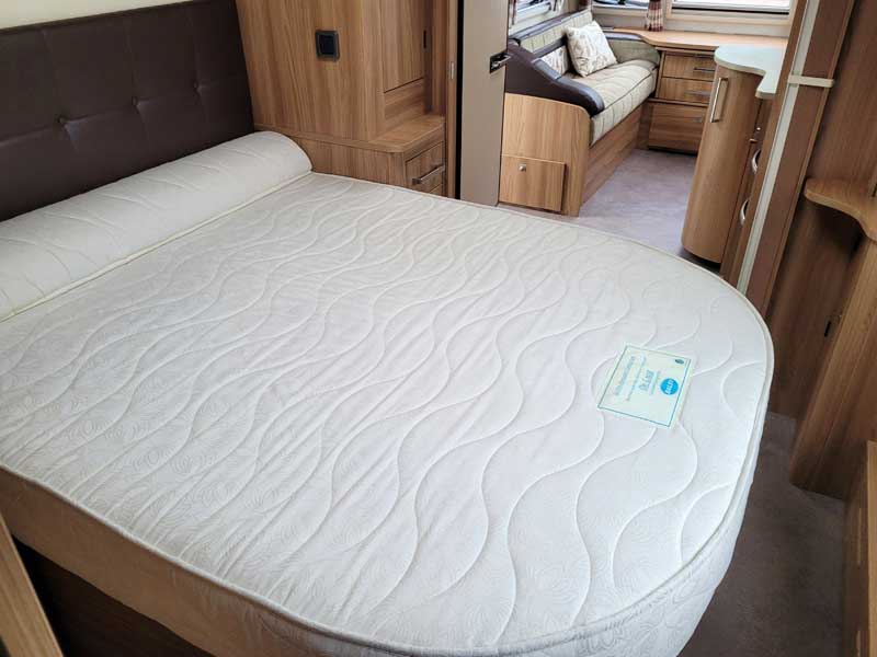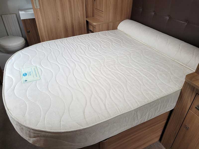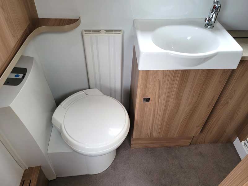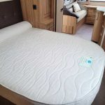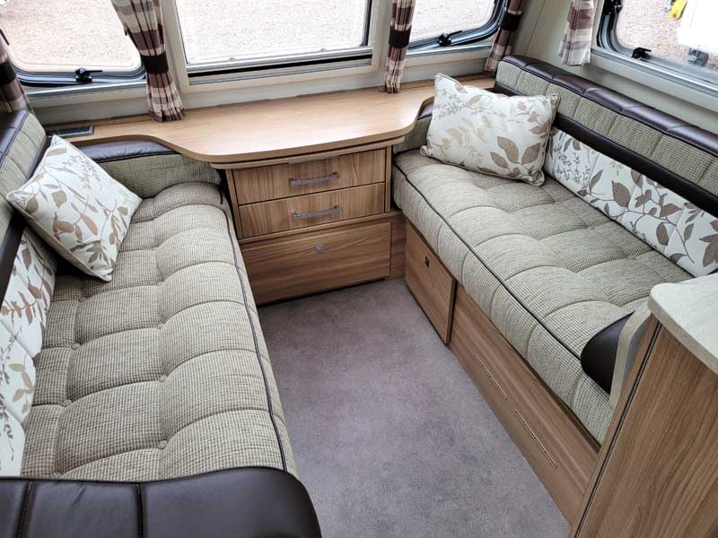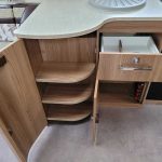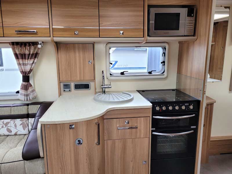Spacious and bright four berth caravan, featuring the popular transverse fixed island bed. Bench seating at the front converts to another double bed, the centre kitchen area includes a full cooker, fridge and integrated microwave, whilst the end bathroom has a large separate shower cubicle, vanity hand basin unit and electric flush swivel cassette toilet.