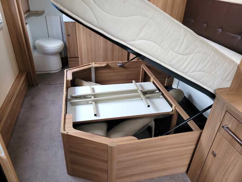 Bench seating at the front converting to a double bed