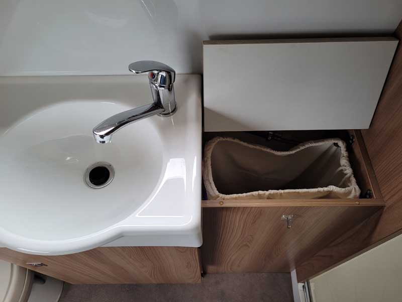 End bathroom with integrated laundry bag