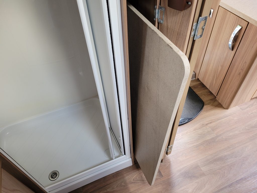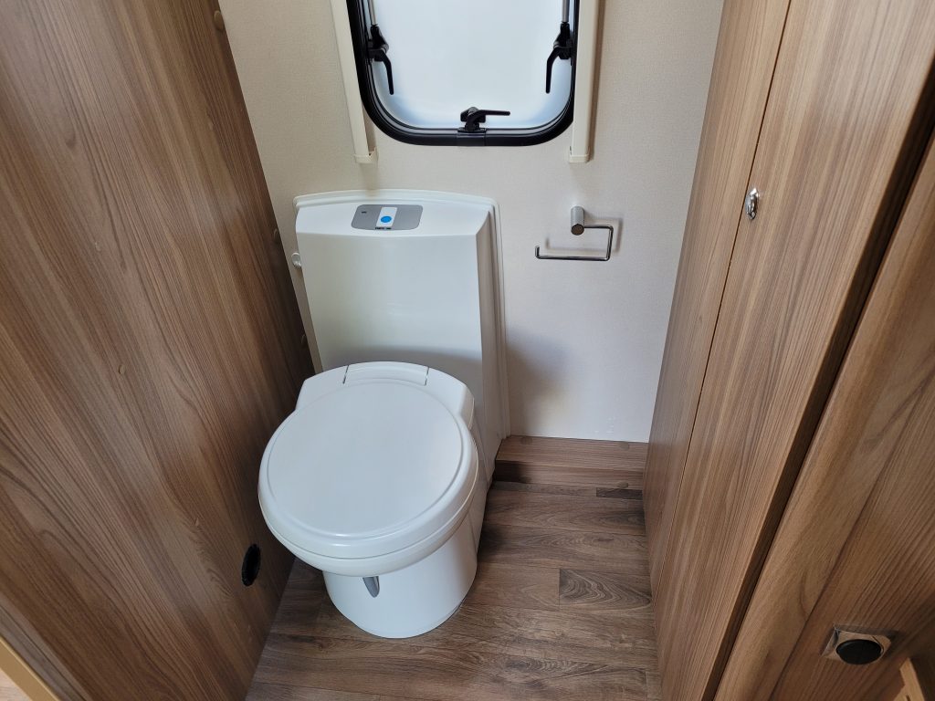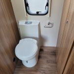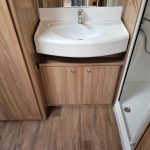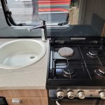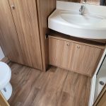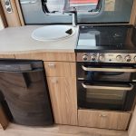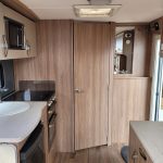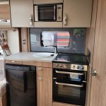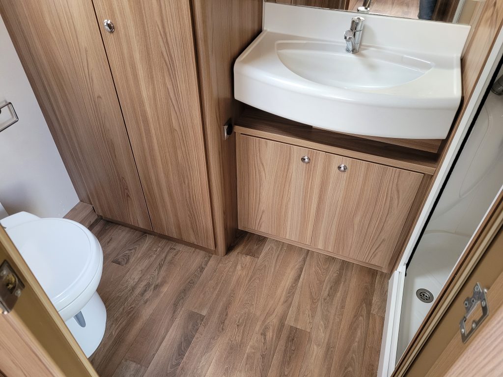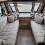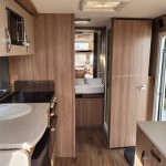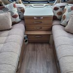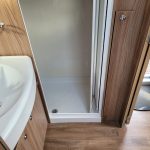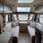Compact and lightweight two berth caravan featuring long bench seats at the front converting to a large double bed, centre kitchen area complete with an integrated microwave and spacious end bathroom with large separate shower cubicle. Further benefits from having a roof mounted solar panel to help keep your battery topped up.